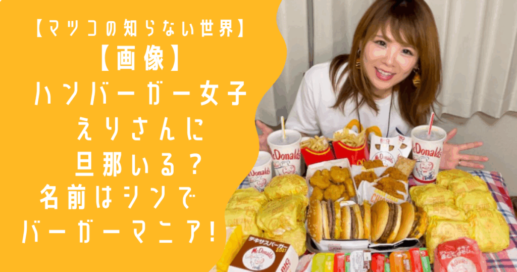 【画像】ハンバーガー女子えりさんに旦那いる?夫の名前はシンでバーガーマニア!