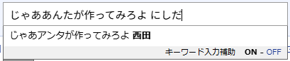 yahooの検索候補を調べると「じゃあアンタが作ってみろよ 西田」というキーワードがでてきたり…。