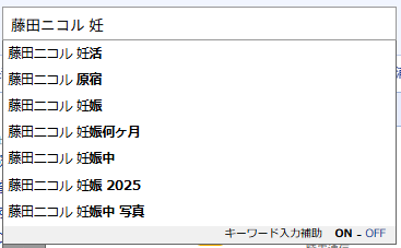 藤田ニコルさんの検索をすると「体外受精」というキーワードが上位表示にでてきます。