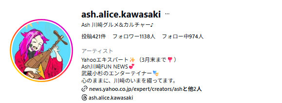②川崎メシの達人のAshさんは琵琶奏者で俳優や演出、グルメライターとしても活躍中!